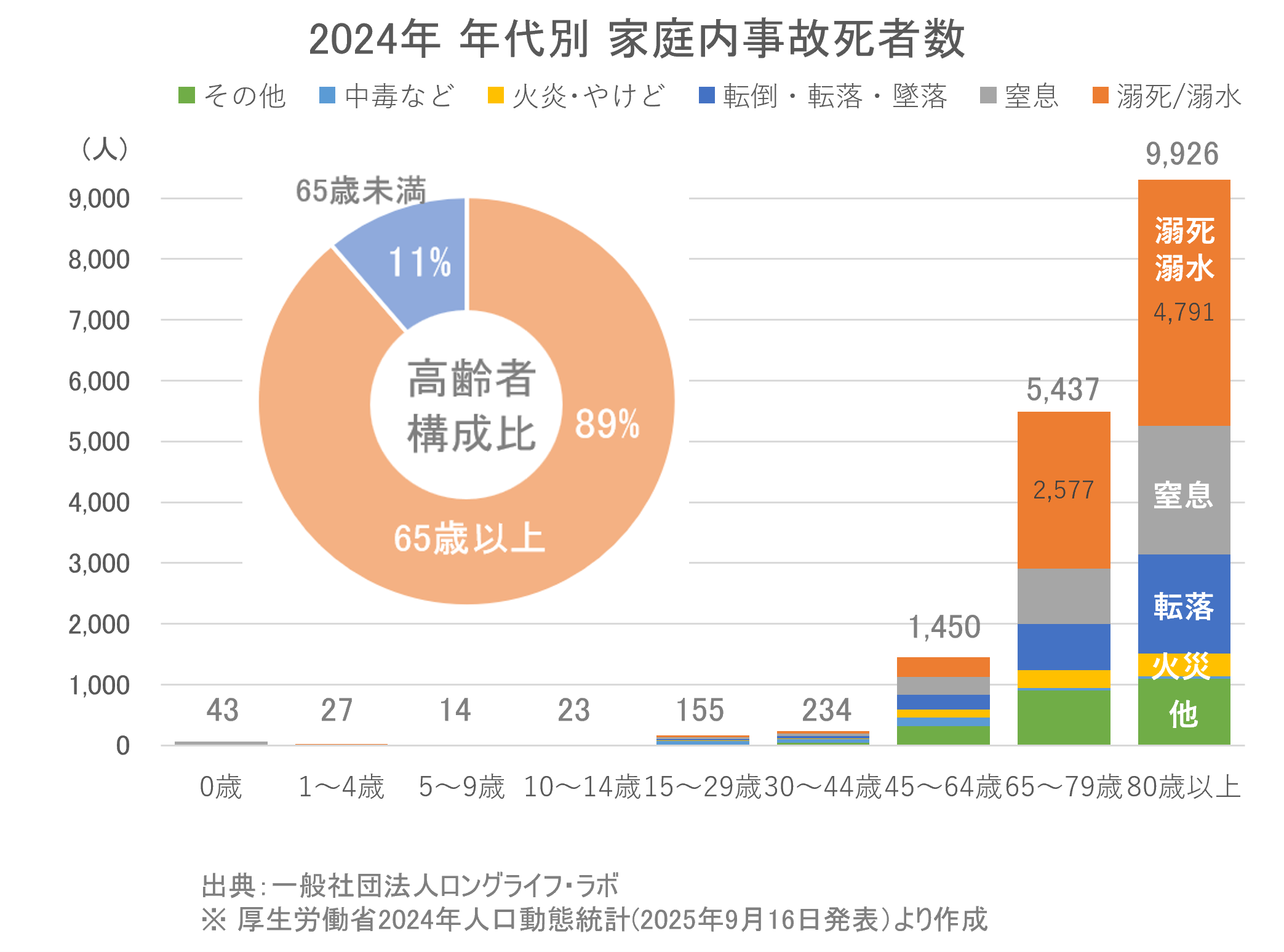 厚生労働省人口動態調査結果(2025.9.16発表)をもとに、私たちの暮らしの中に潜む『家庭内の不慮の死亡事故の実状』をお伝えいたします(毎年、最新データにて更新)。
