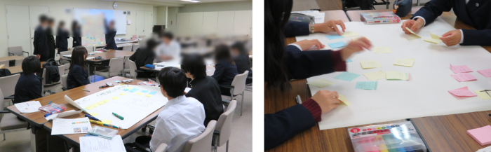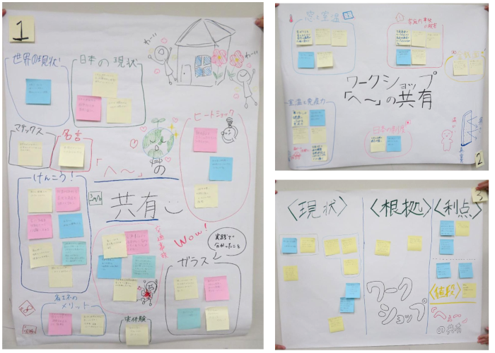 最後のグループワークでは、講義を通じて「へぇ~と思ったこと」「これから行動に移したいこと」をテーマに意見を出し合い、各グループで内容を整理して発表を行いました。